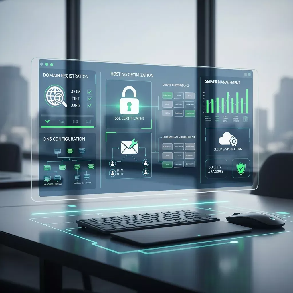 Simplify your online presence management with our comprehensive Domain & Hosting Management service. Our technical experts handle all aspects of domain registration, DNS configuration, hosting optimization, and server management, ensuring your website remains accessible, fast, and reliable while you focus on your core business operations.